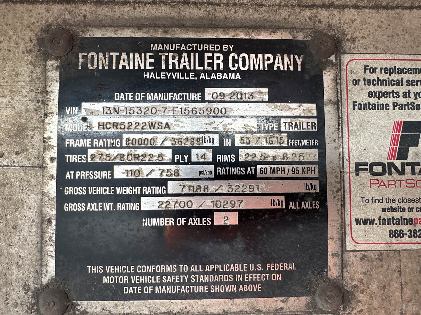 2014 Fontaine 53 ft Flat Bed Trailer