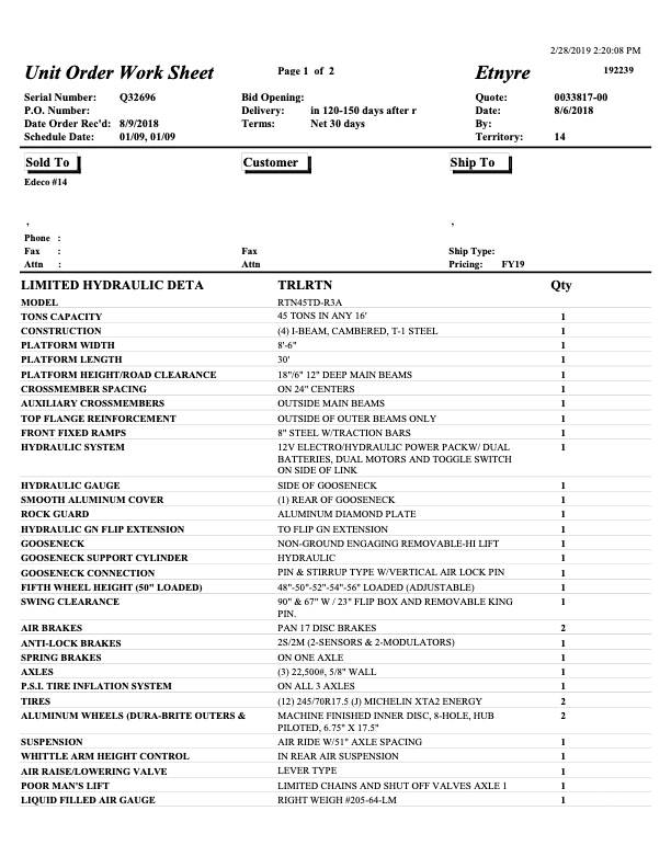 Model: Etnyre RTN45TD-R3A 51' Lowboy Trailer