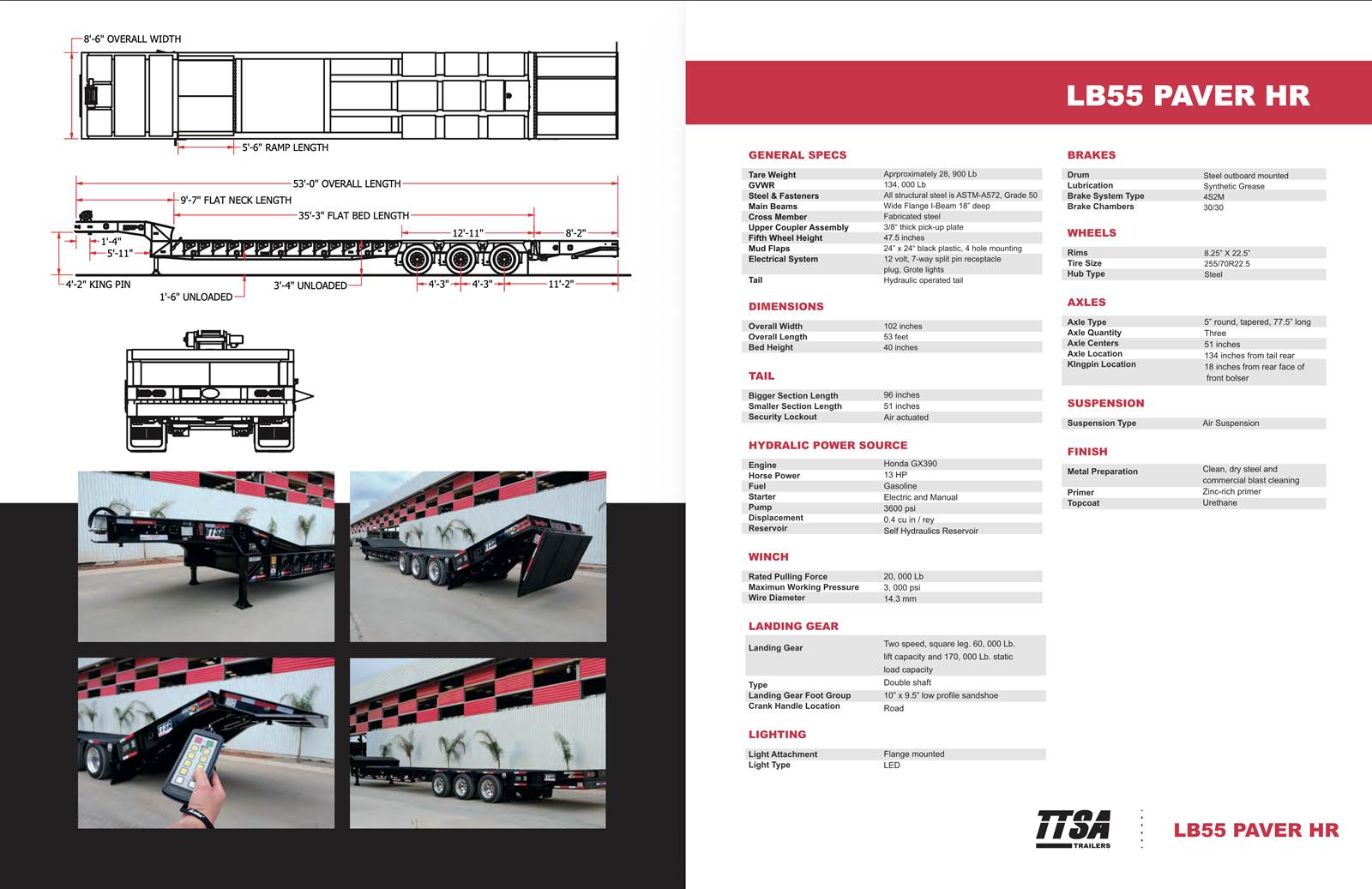 Model: TTSA LB55 53' Hydraulic Paver Tail Trailer